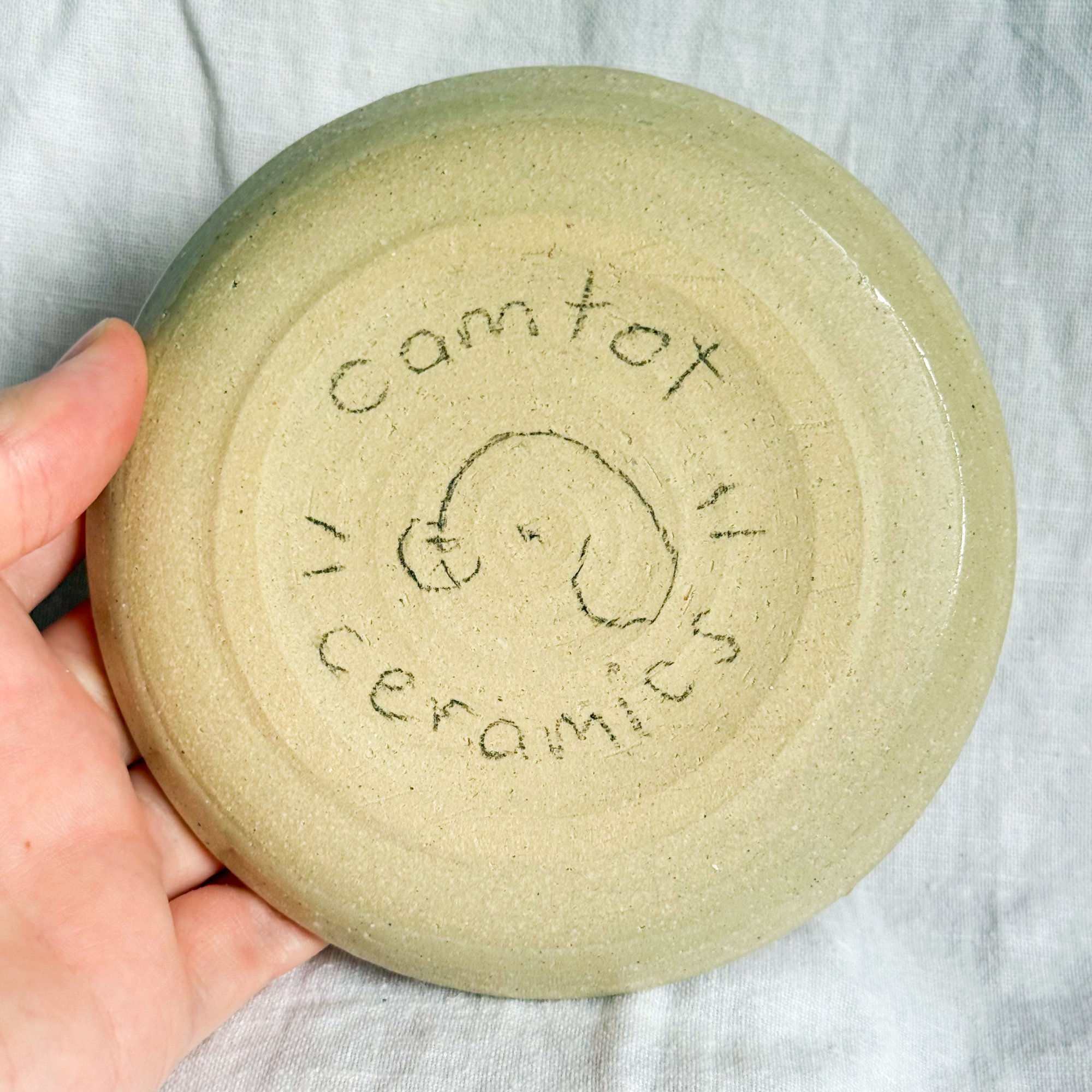 A small, shallow ceramic plate for holding trinkets, snacks, or whatever else you want!