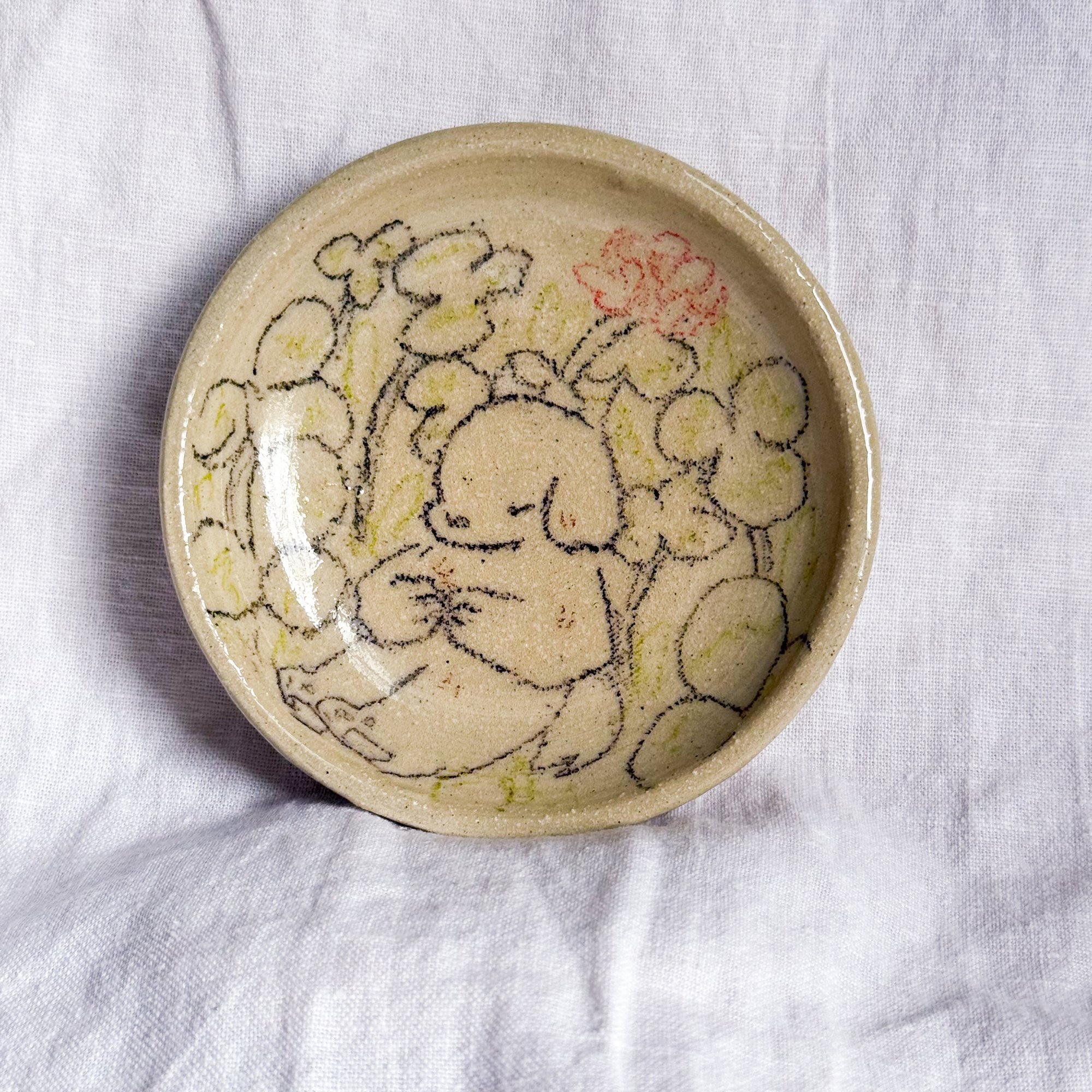 A small, shallow ceramic plate for holding trinkets, snacks, or whatever else you want!