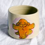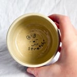 A handmade ceramic cup for holding cold drinks or a desk pencil holder. Suitable for warm drinks too but hot/boiling drinks may make the cup too hot to hold comfortably.