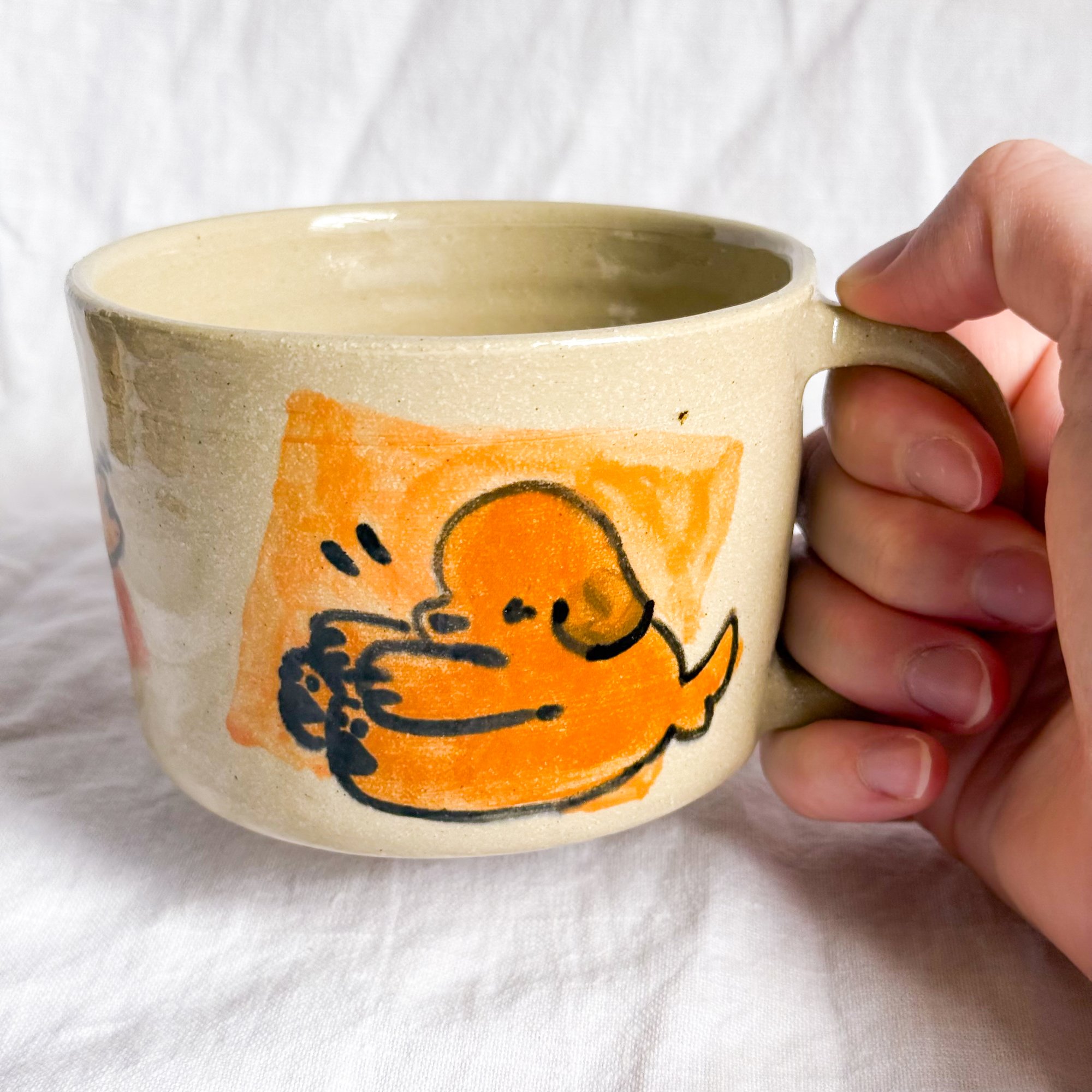 A handmade ceramic mug for holding your hot drinks. Or cold drinks. Or whatever else you wanted.