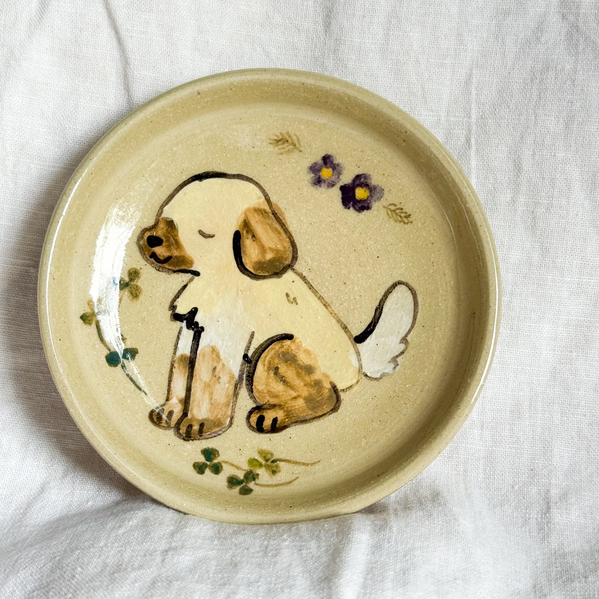 A small, shallow ceramic plate for holding trinkets, snacks, or whatever else you want!