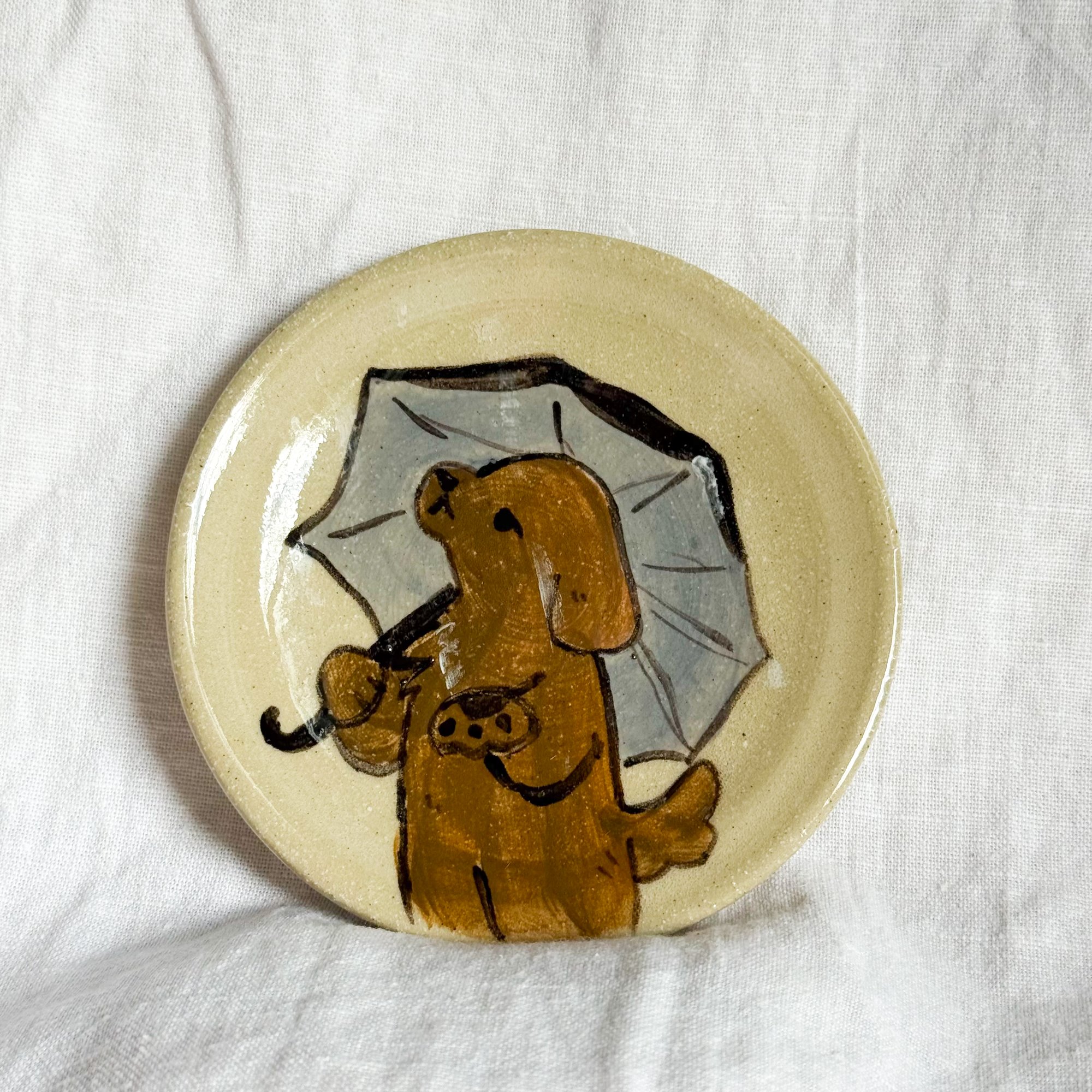 A small, shallow ceramic plate for holding trinkets, snacks, or whatever else you want!