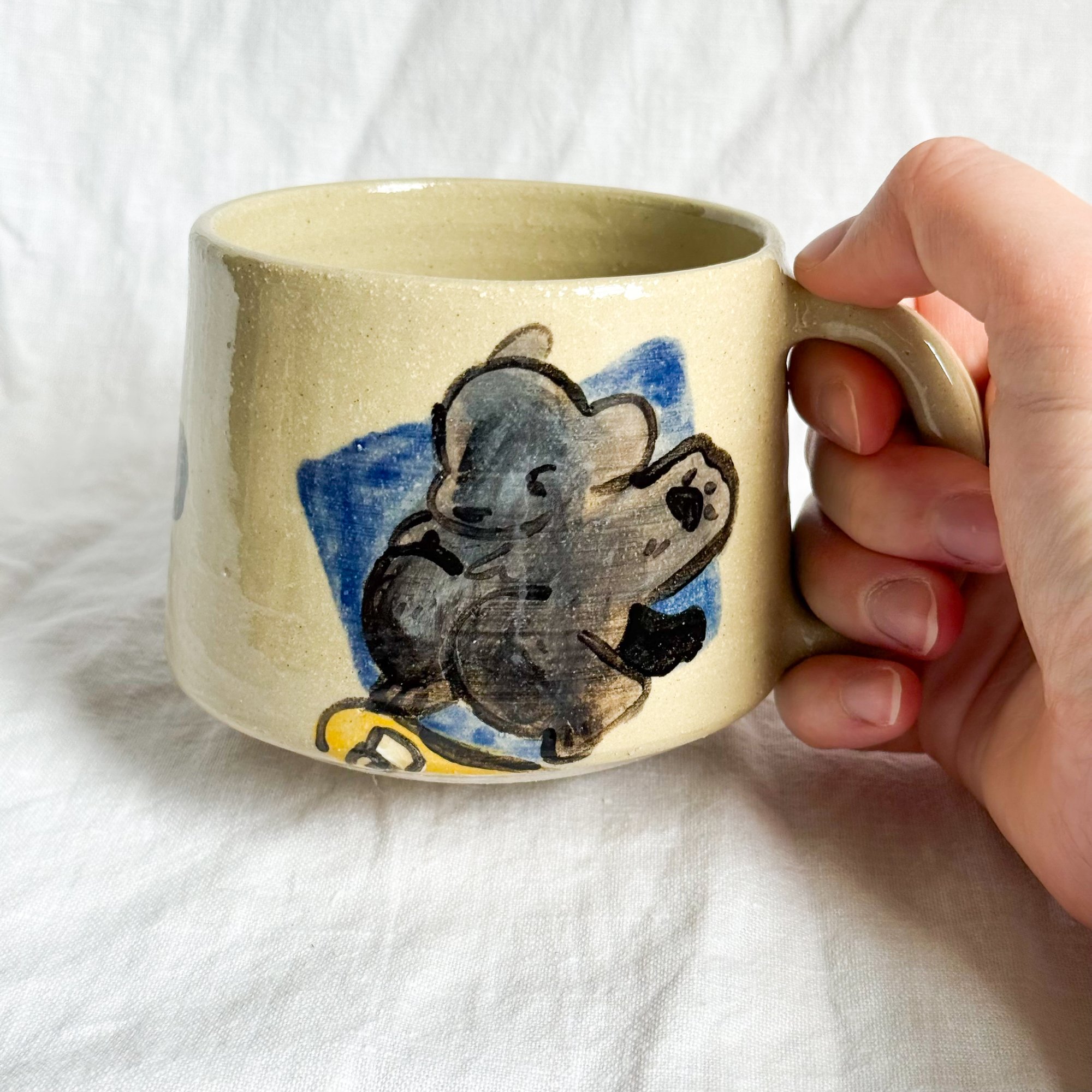 A handmade ceramic mug for holding your hot drinks. Or cold drinks. Or whatever else you wanted.