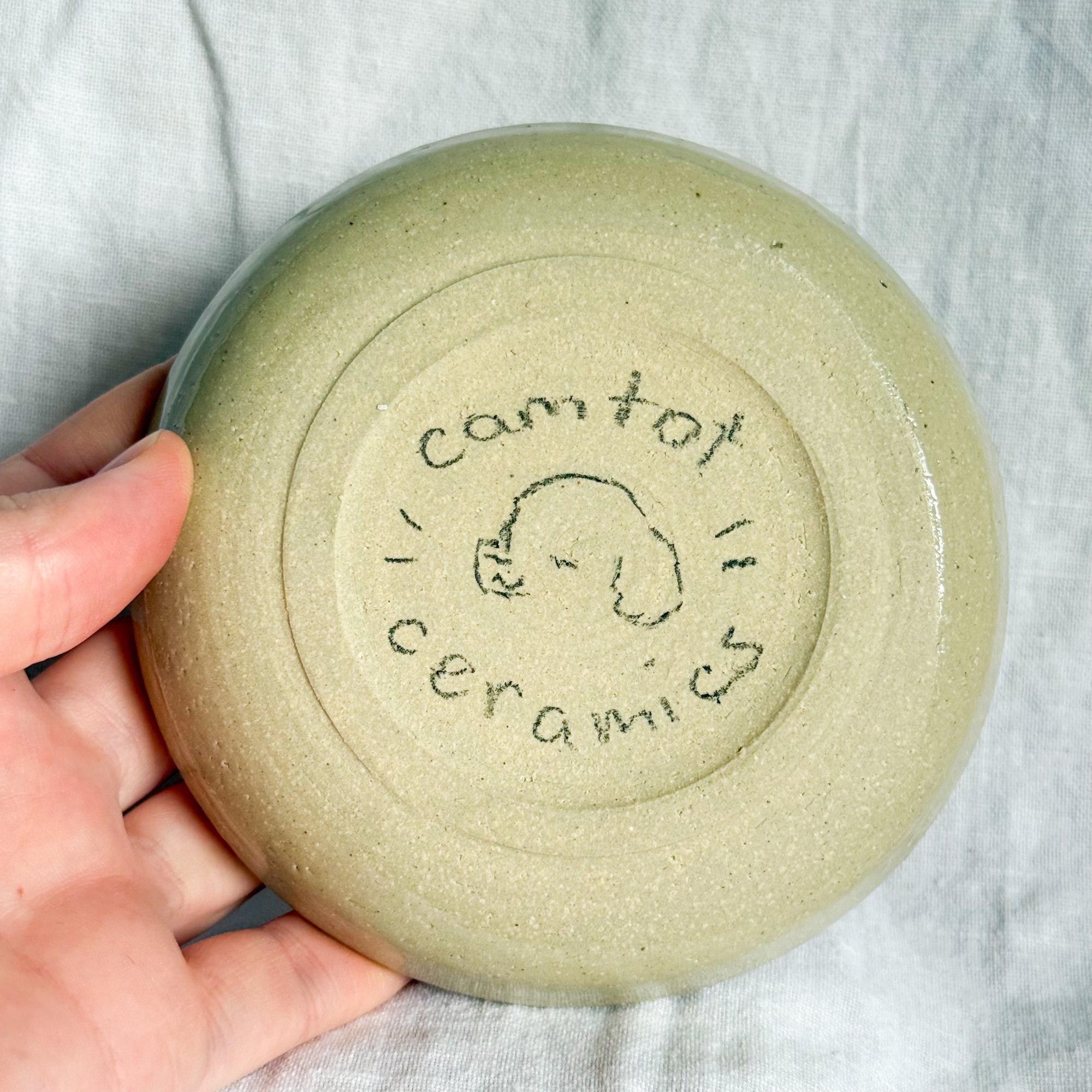 A small, shallow ceramic plate for holding trinkets, snacks, or whatever else you want!