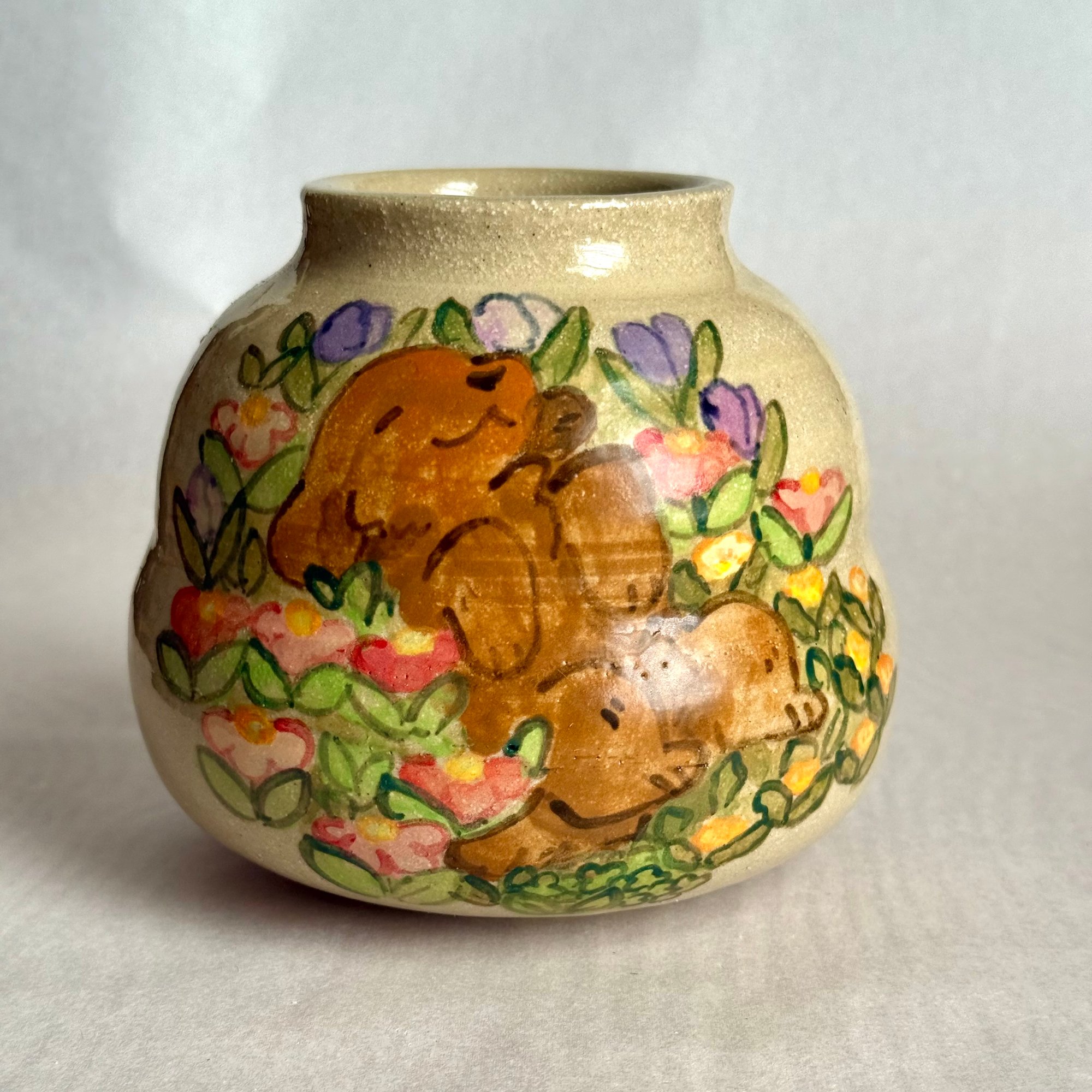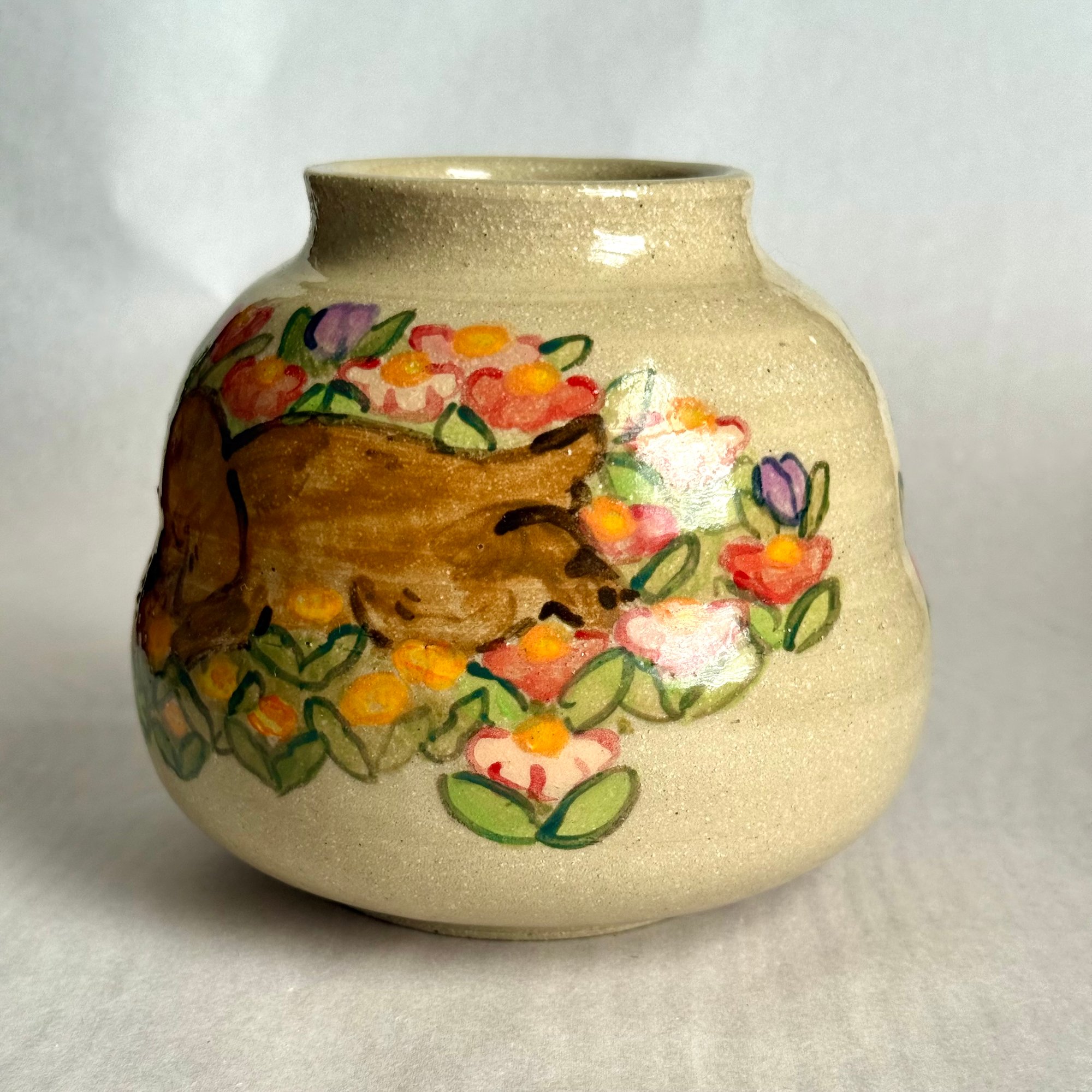 A handmade ceramic vase for holding flowers or just as decoration.