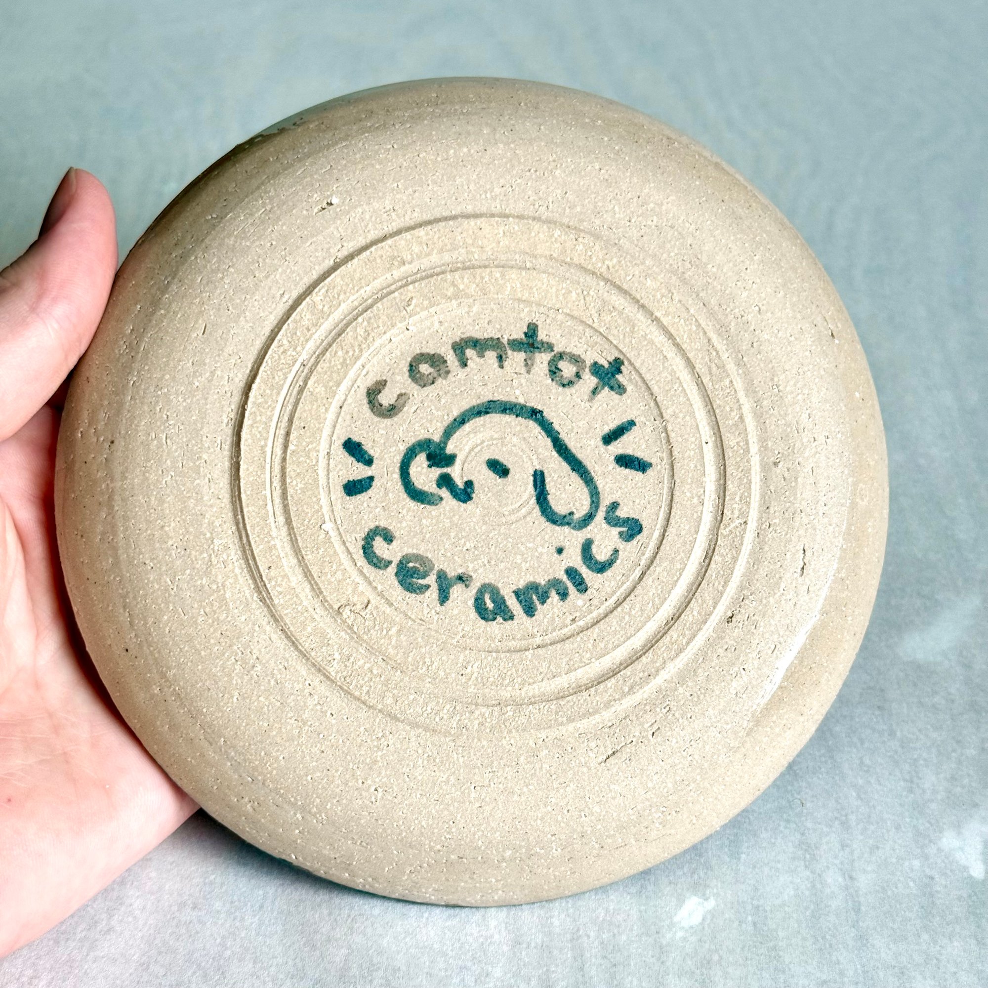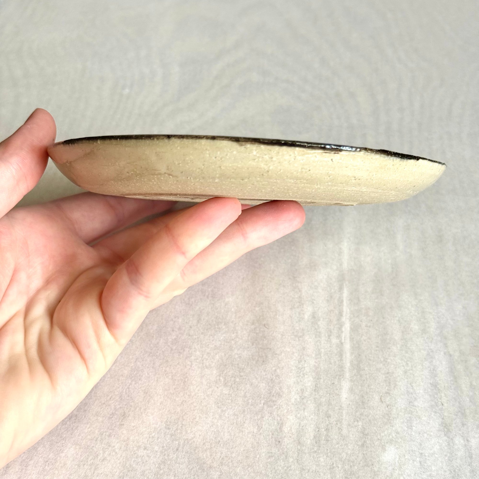 A small, shallow ceramic plate for holding trinkets, snacks, or whatever else you want!