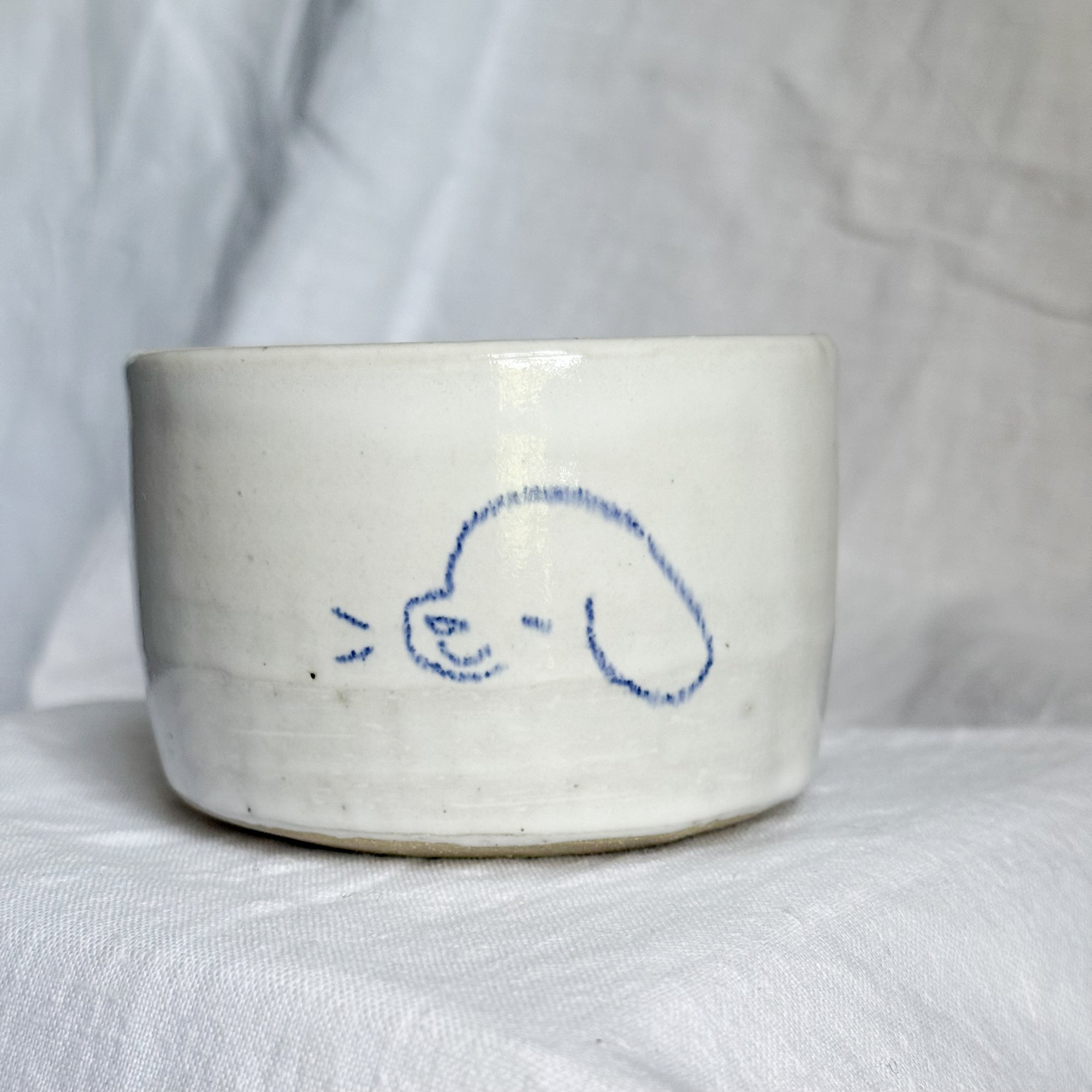 A handmade ceramic cup for holding cold drinks or a desk pencil holder. Suitable for warm drinks too but hot/boiling drinks may make the cup too hot to hold comfortably.