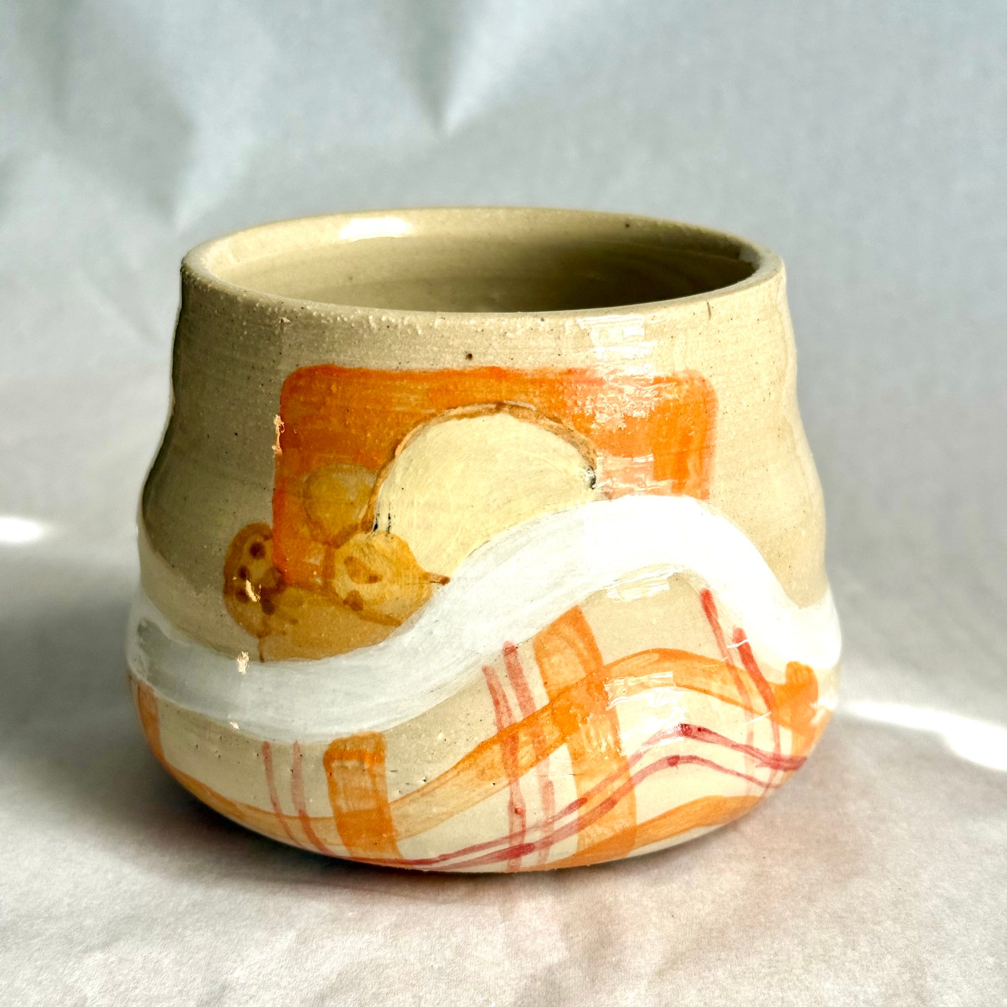 A handmade ceramic cup for holding your warm drinks. Or cold drinks. Or whatever else you wanted.