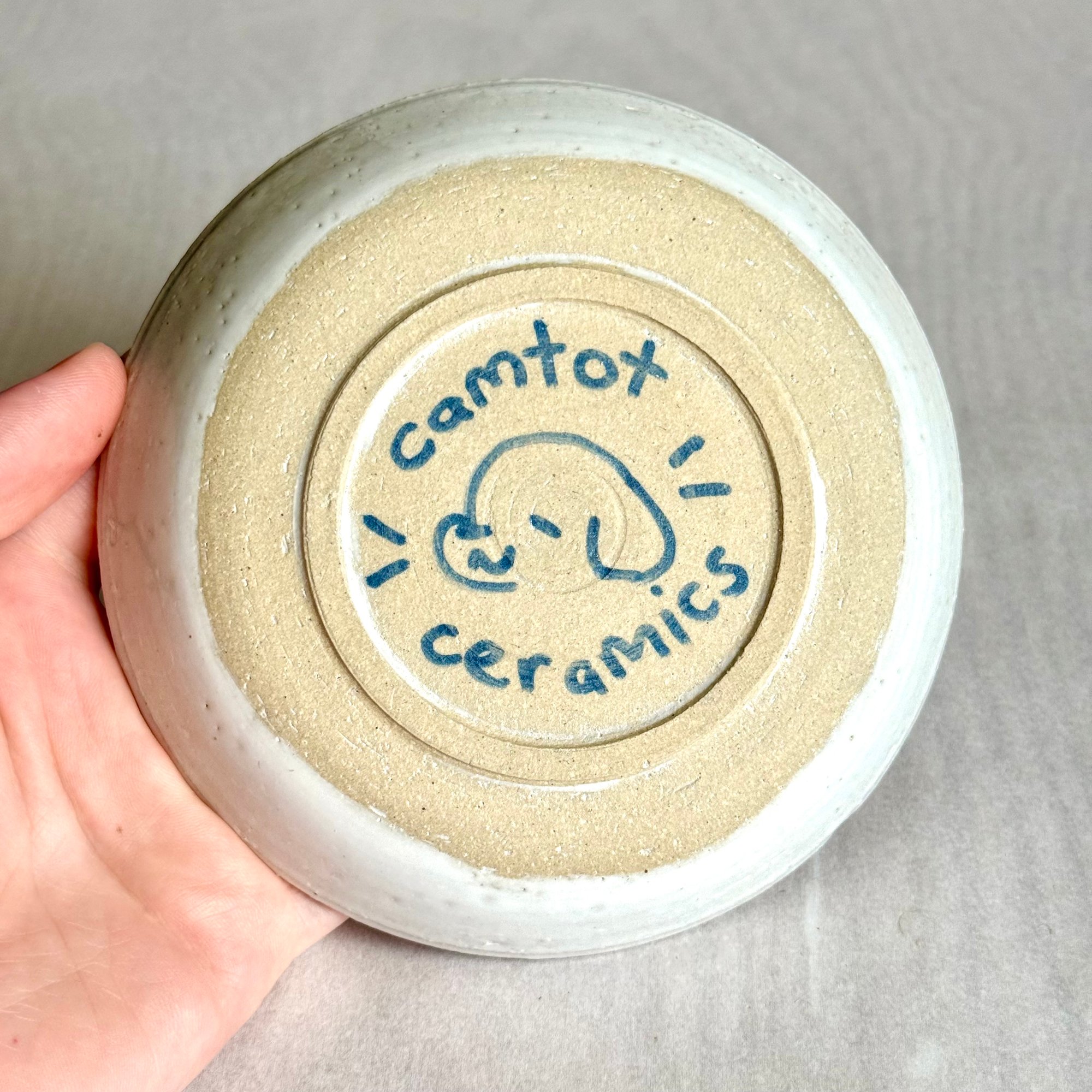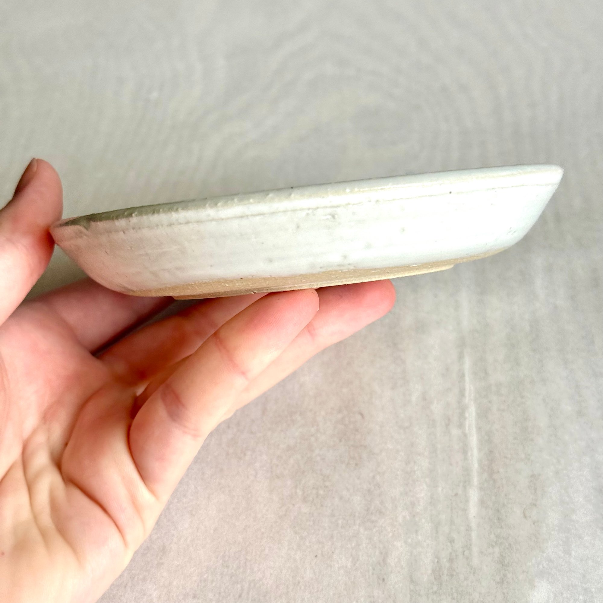 A small, shallow ceramic plate for holding trinkets, snacks, or whatever else you want!